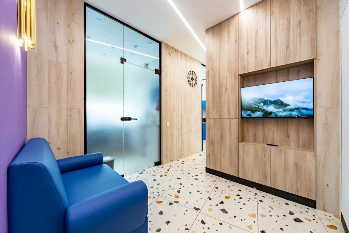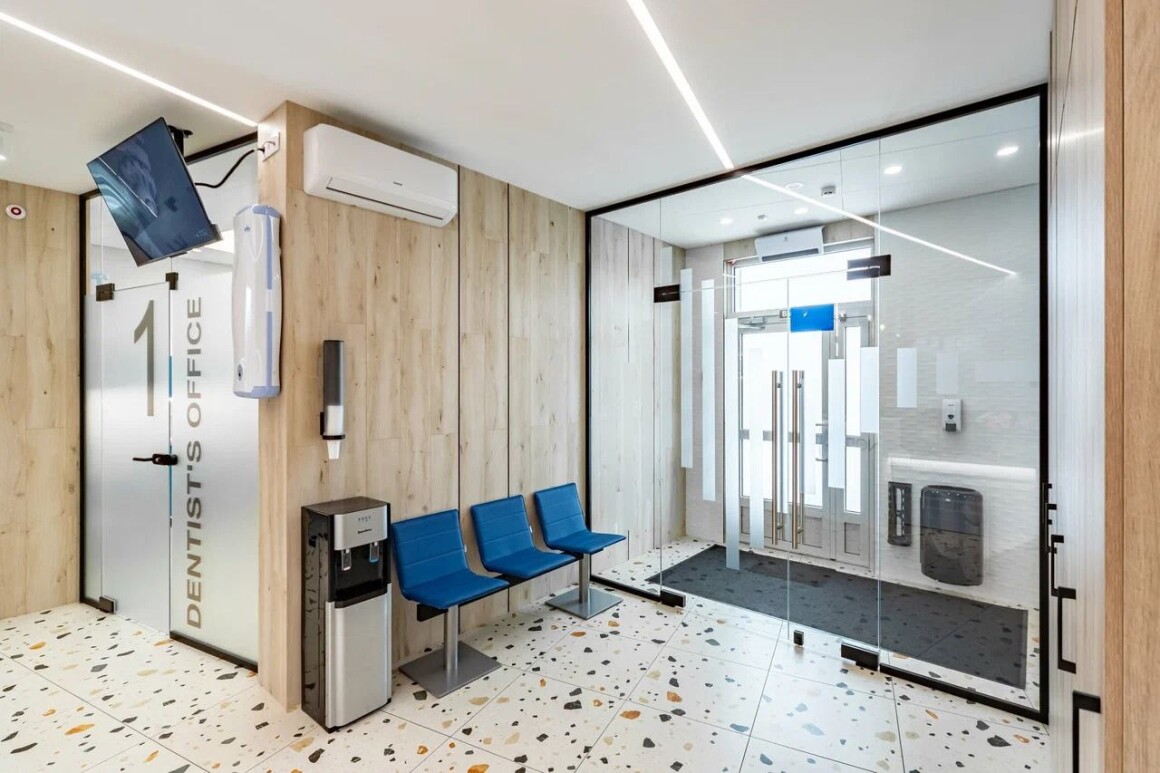 Перед запуском заказа в производство была проведена детальная сверка каждого дверного полотна: мы выверяли расположение элементов буквально до миллиметра.Особое внимание уделили направлению открывания дверей и безупречной работе доводчиков. Это критически важно, так как речь идет о стоматологических кабинетах. В условиях постоянного потока пациентов двери должны работать мягко, но при этом гарантировать приватность — во время приема они всегда обязаны быть закрыты.